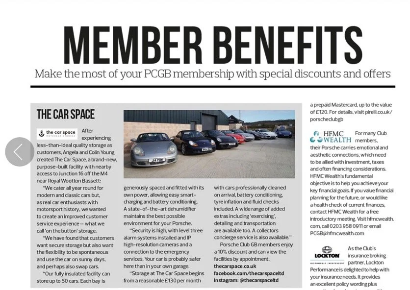 We are pleased to work in collaboration with the Porsche Club GB bringing members a discount on our premium car storage services.